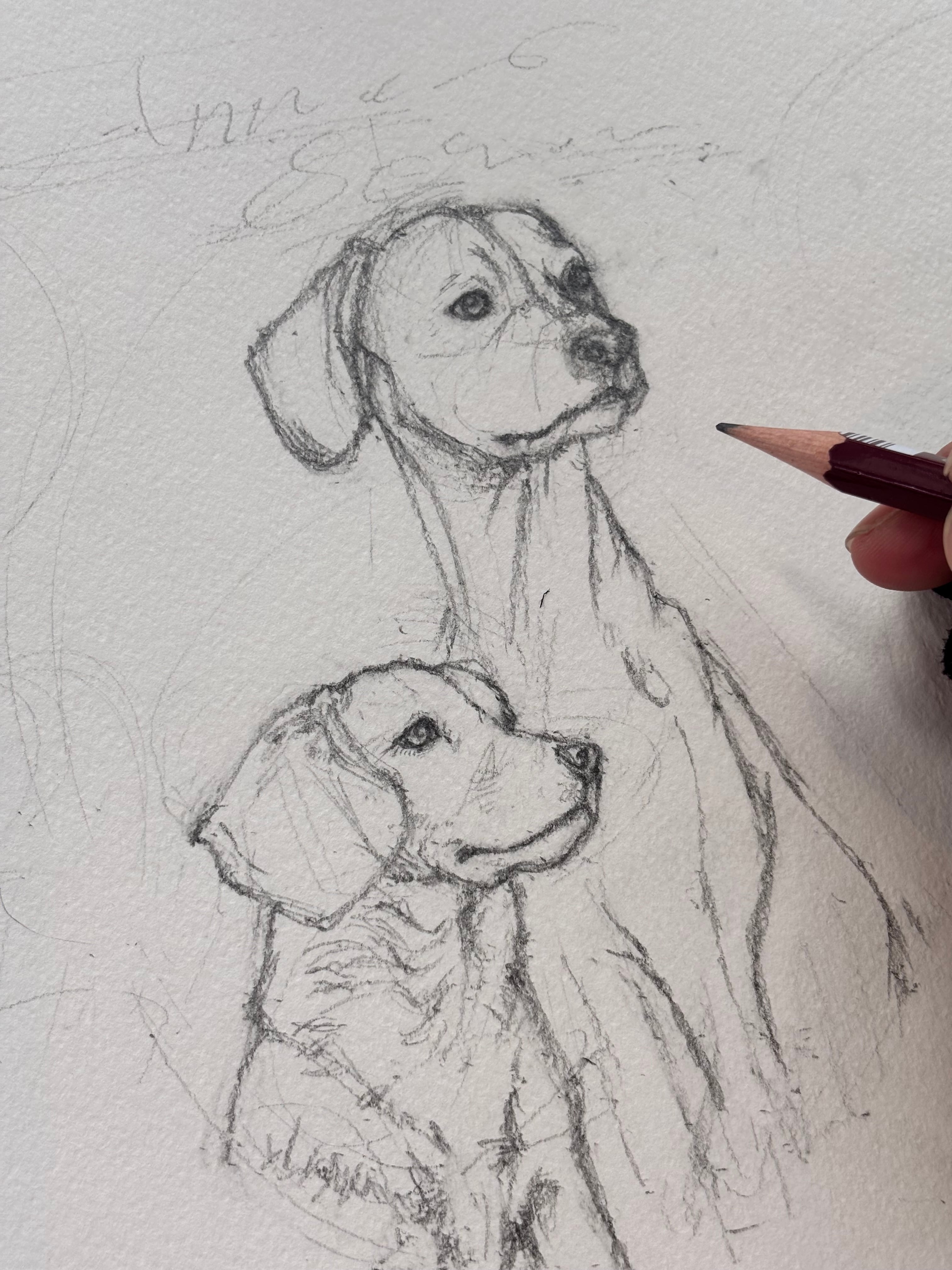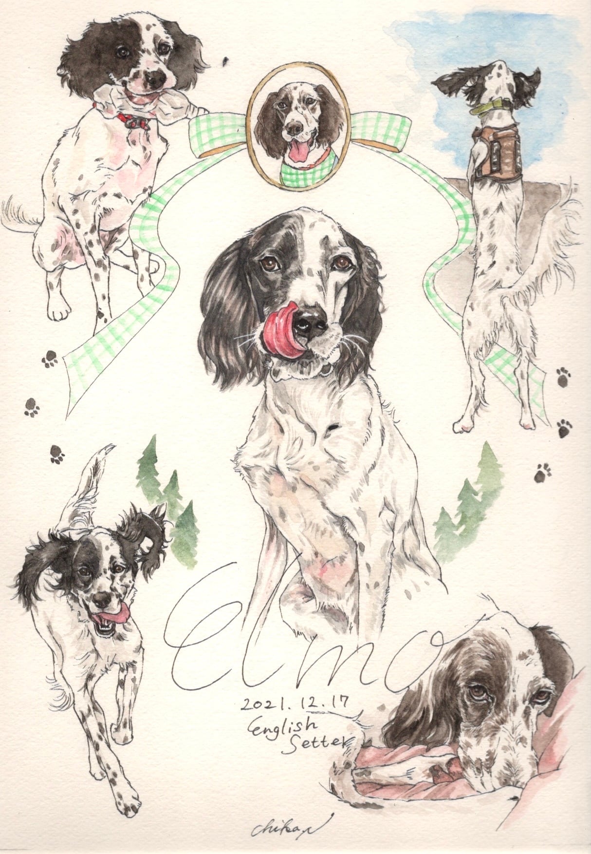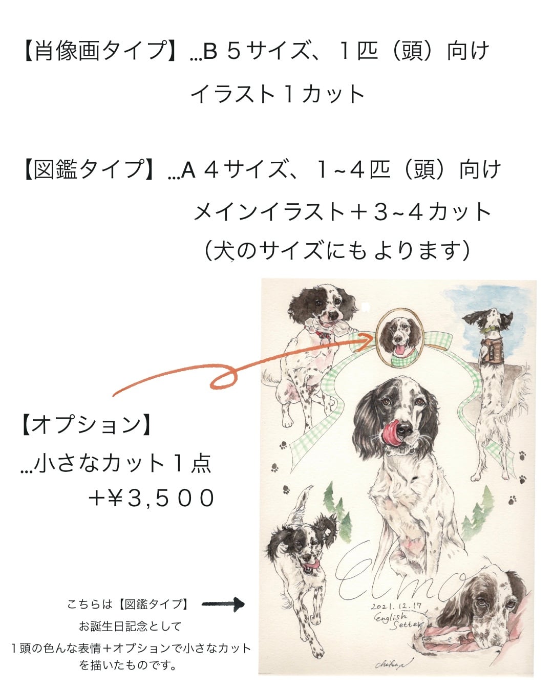 メインのイラストを中心に愛犬の普段の姿や個々の性格がわかるようなイラストを数点描きます。