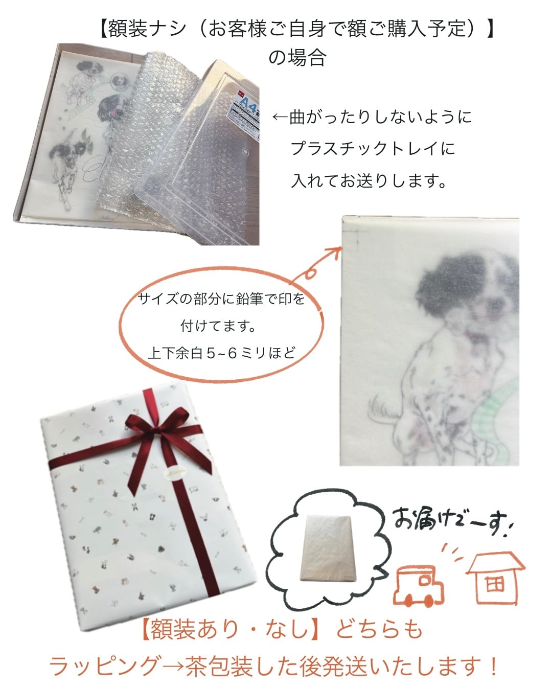 ・完成しましたら額装してゆうパック着払いで発送いたします。額装不要の場合は曲がらないよう梱包いたします。